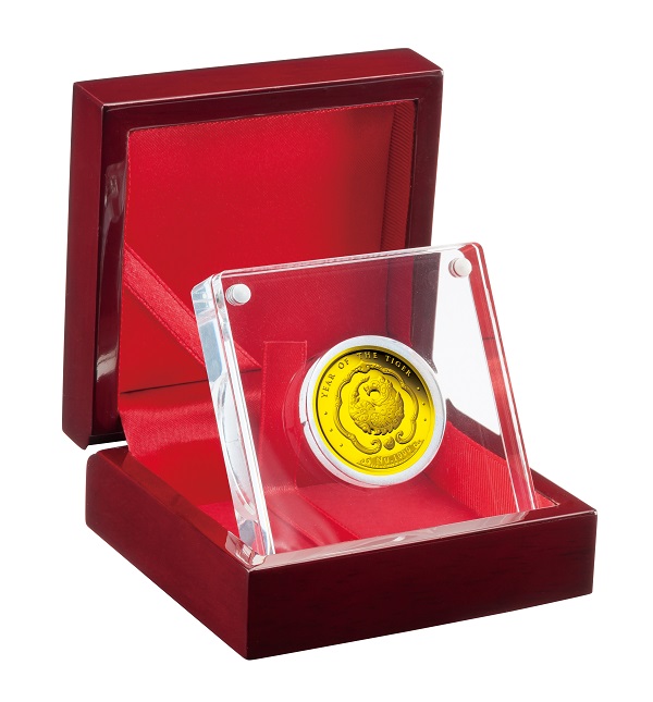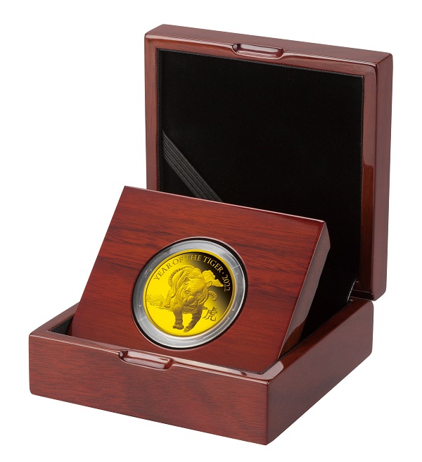 英国発行のすべてのポンド硬貨に共通の女王エリザベス2世の肖像が描かれています。2015年から採用されている5番目のデザインは、アーティストのジョディ・クラーク氏によるもので、穏やかな微笑をたたえた表情が特徴的です。額面のほか英国君主の称号である「D.G.REG.F.D」が刻まれています。 【裏面】 1100年以上の歴史を有する英国王立造幣局によるクラフトマンシップと最新の鋳造技術によって、コインから飛び出して来そうな迫力の虎を正面から繊細かつ立体的に描かれています。漢字の「虎」と英語で「YEAR OF THE TIGER」と刻まれ、西洋と東洋の文化が融合したデザインとなっています。 |