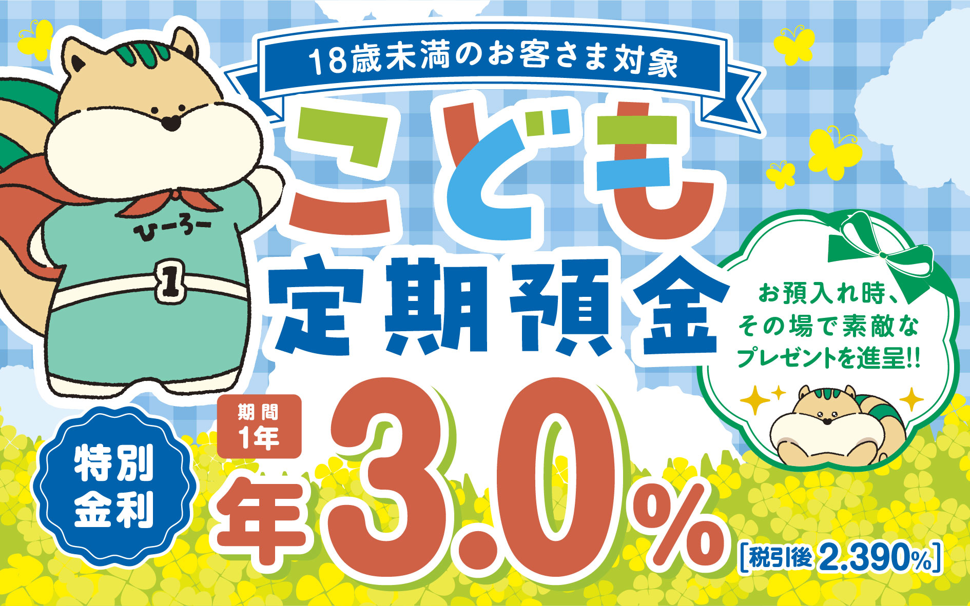 - 当行ホームページにこども定期預金「商品概要書」を掲載しております。